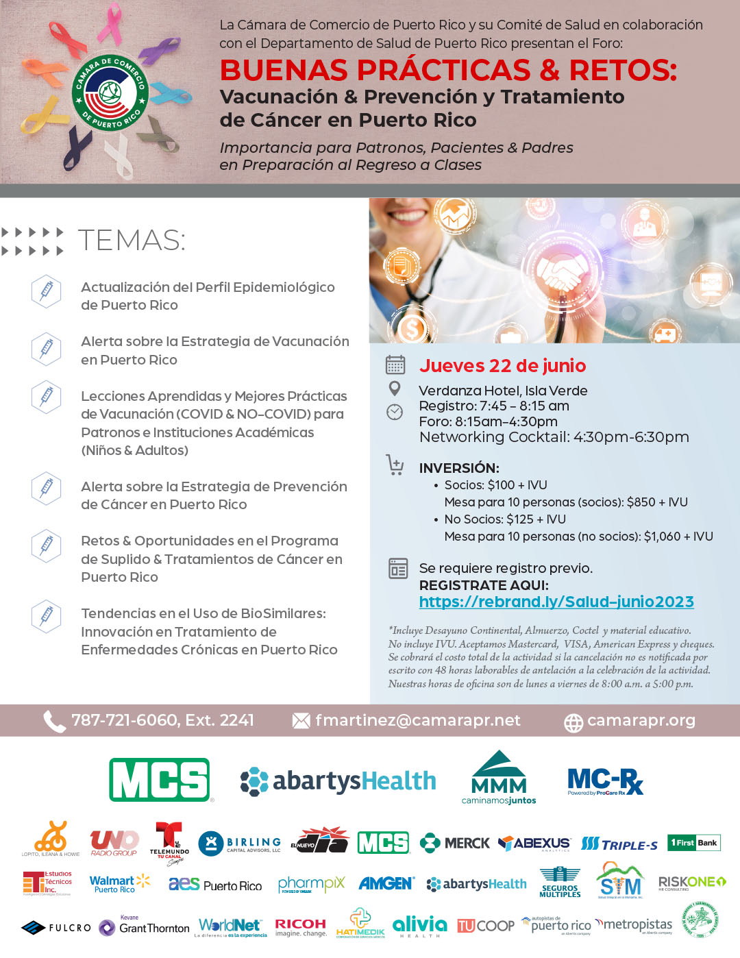 The Puerto Rico Chamber of Commerce and its Health Committee in collaborationwith the Department of Health of Puerto Rico present the Forum: Good Practices & Challenges: Vaccination & Prevention and Treatment of Cancer in Puerto Rico