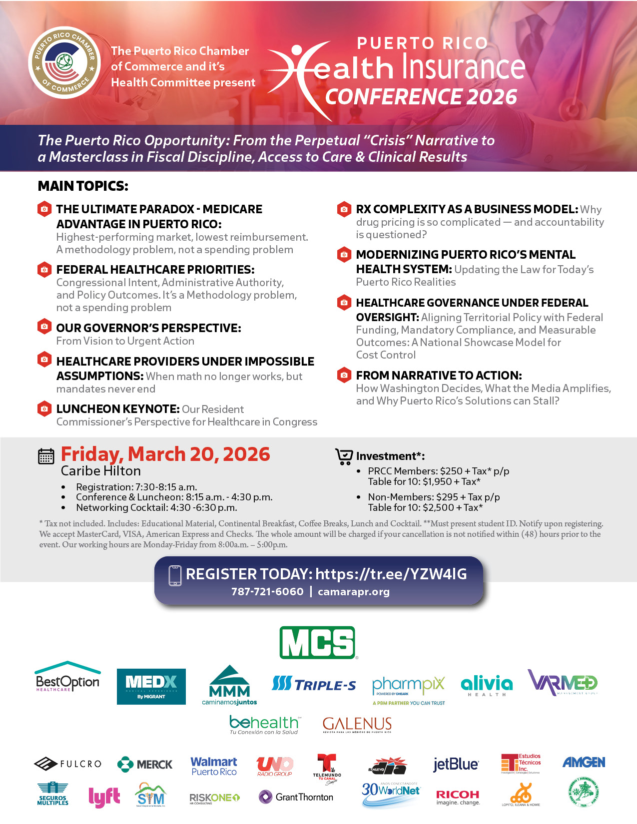 ¡No pierdas esta oportunidad de obtener información clave, conectar con líderes influyentes y ser parte de la conversación que definirá el futuro del sistema de salud en Puerto Rico!