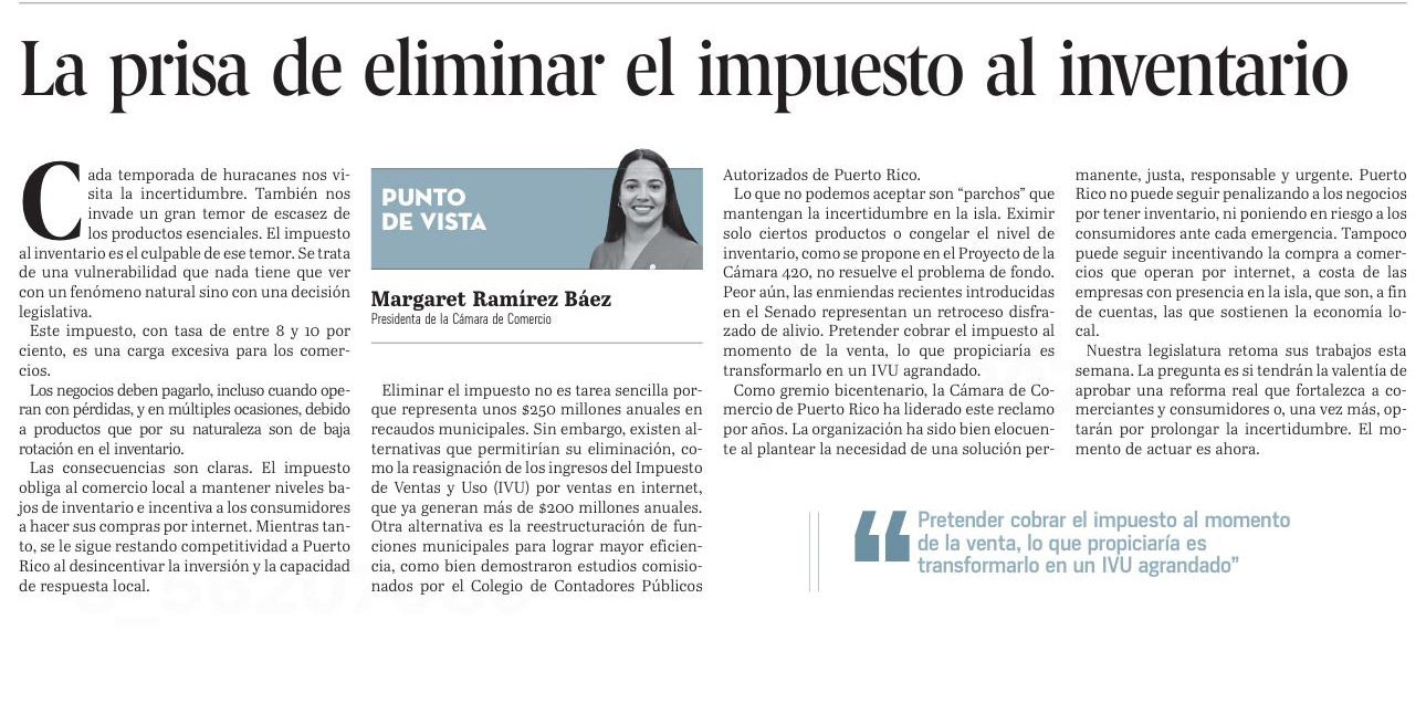 As a centennial business organization, the Puerto Rico Chamber of Commerce has led this call for years. The organization has consistently advocated for a permanent, fair, responsible, and urgent solution. Puerto Rico can no longer penalize businesses for maintaining inventory or place consumers at risk during emergencies.